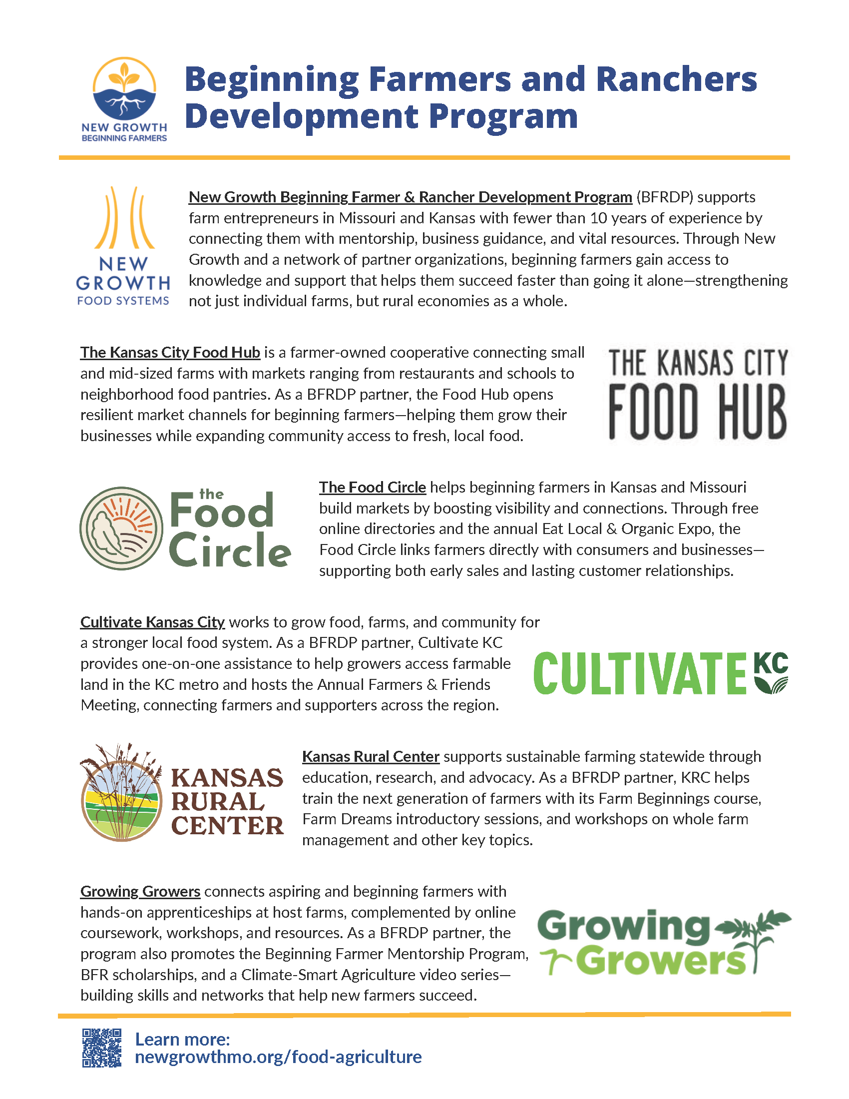 The program’s strength lies in collaboration. Through BFRDP, New Growth works alongside a network of dedicated organizations across Missouri and Kansas to ensure farmers get the support they need.